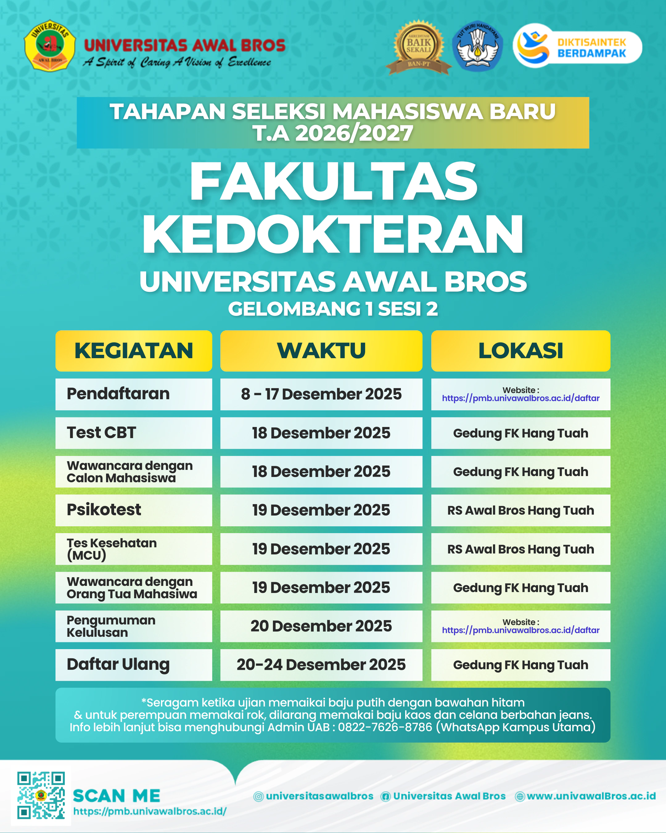 TAHAPAN SELEKSI MAHASISWA BARUFAKULTAS KEDOKTERAN SESI 1&2